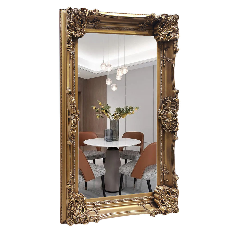 Wholesale LONGWEI Vintage Carved Wood Frame Custom Size Full Length Hanging Dressing Wall Mirror with Aluminum Glass