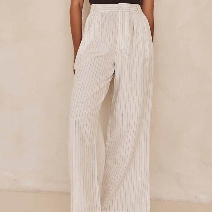 Wholesale Ladies Loose Fitting Casual Trousers Black and White Stripe Pants