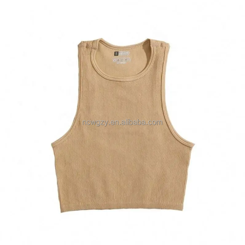 Wholesale Ladies Sleeveless T Shirt CREW Neck Custom Screen Print Plain Soft Gym Workout Fitted Cotton Ribbed Tank Top Women