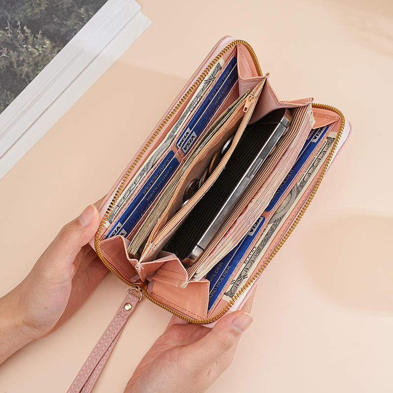 Wholesale Large Capacity Leather Wallet Women Long PU Leather Card Holder Women Clutch Long Womens Wristlet Wallet