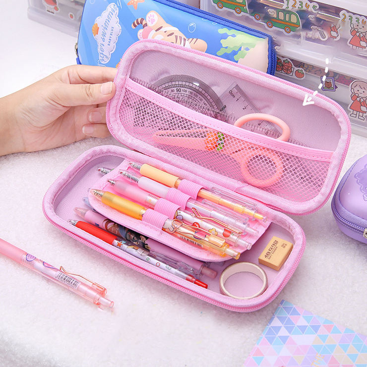 All'ingrosso astuccio rosa di grande capacità per bambini ragazze carino 3D Cat PU EVA forniture per la scuola