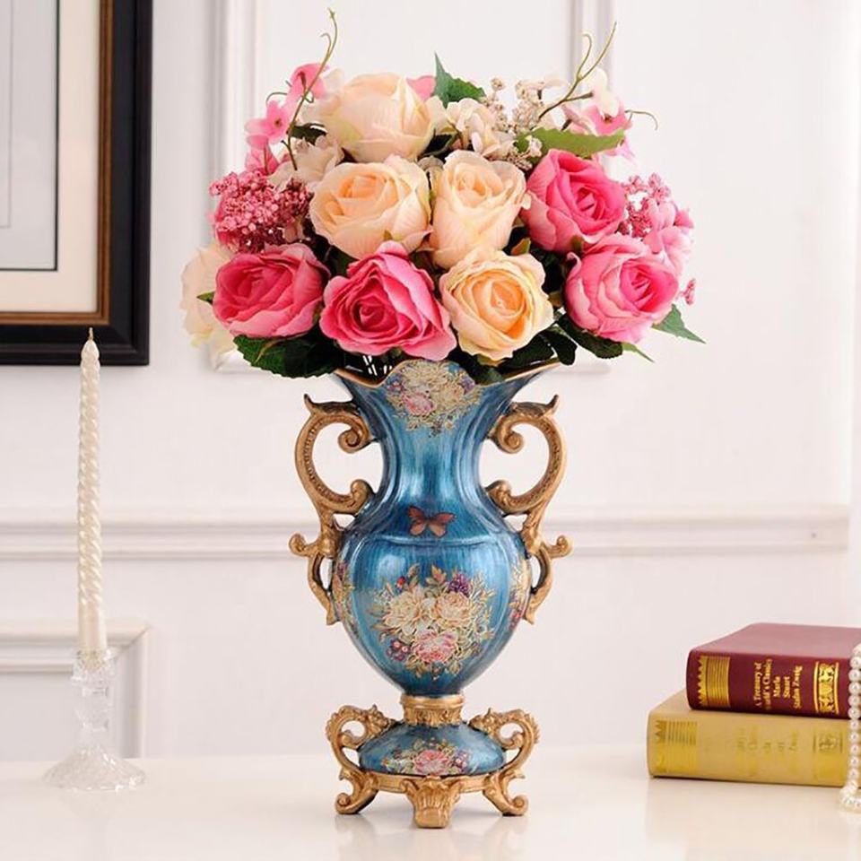 Wholesale Large Size Home Decor European Style Retro Luxury Resin Flower Vase for Living Room