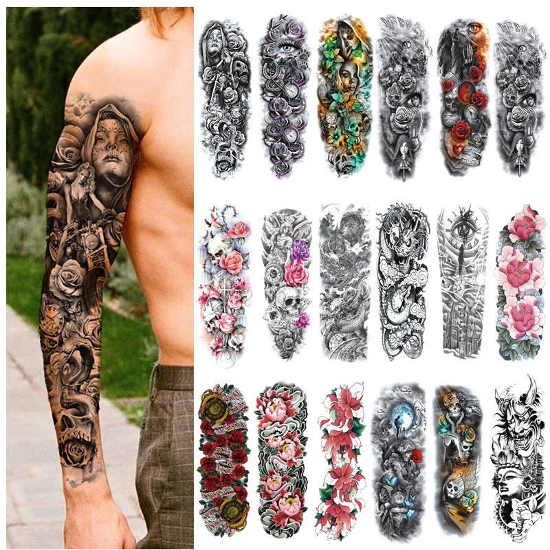 Tatuaggi Temporanei Finti Impermeabili a Manica Intera di Grande Formato per Uomo Donna Adulto, Lunga Durata, Vendita all'Ingrosso