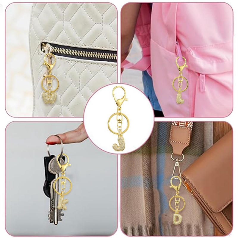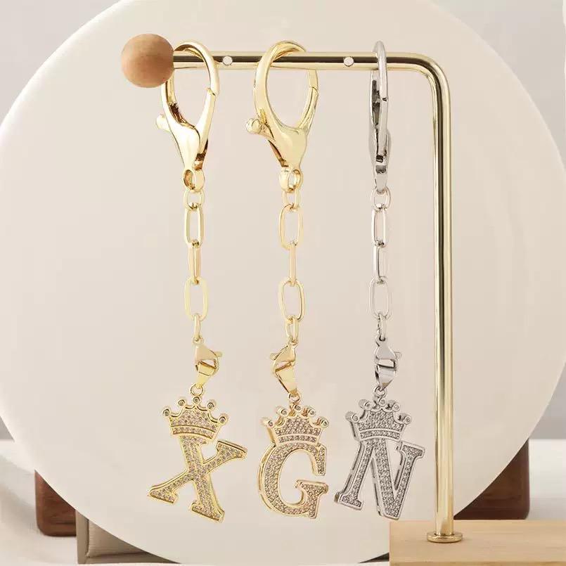 Portachiavi all'ingrosso con lettere di moda con alfabeto a diamante per portachiavi in oro argento alla moda portachiavi iniziale per borsa