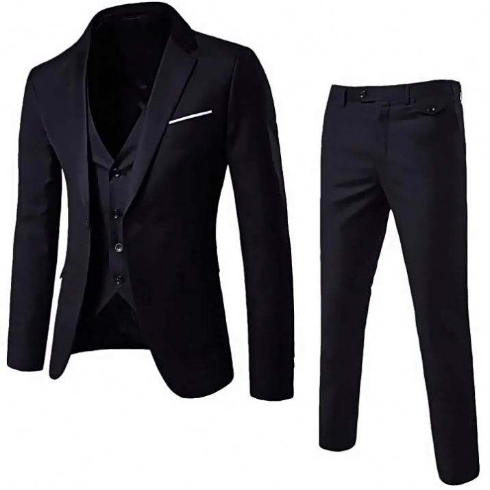 Completo Formale Grigio Chiaro e Nero 3 Pezzi: Blazer, Gilet e Pantaloni Slim Fit con Bottone Singolo per Uomo, Adatto per Matrimoni, Ufficio e Affari