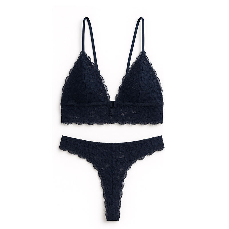 Set di Lingerie all'Ingrosso per Donne, Colore Blu Navy, Bralette Senza Ferretto e Slip in Pizzo
