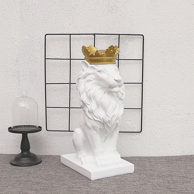 Wholesale Lion Crown Statue Lion En Resin Ornament Resin Gold Crown Lion Statue