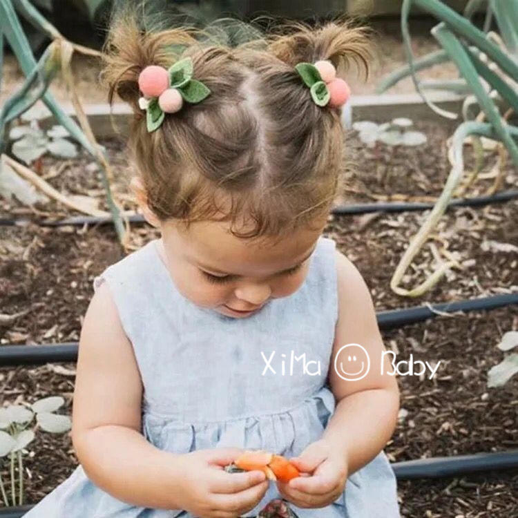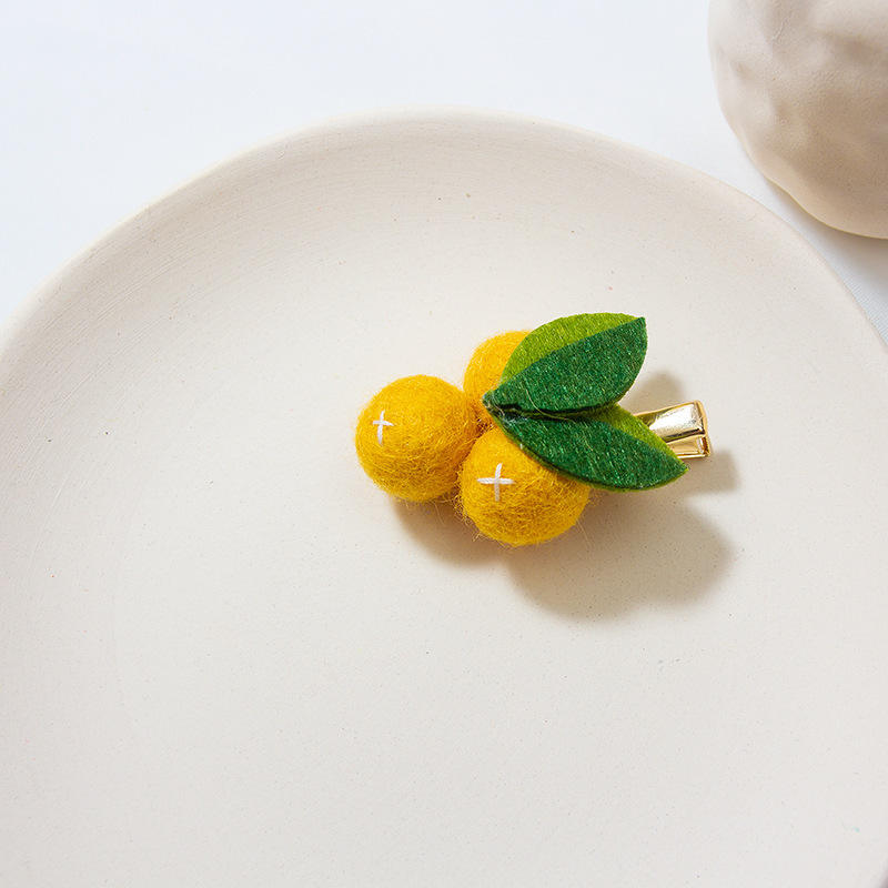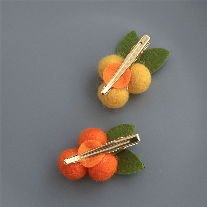 Fermaglio per Capelli con Pallina di Lana Arancione, Nuovo Stile di Accessori per Ragazze, Clip Laterale