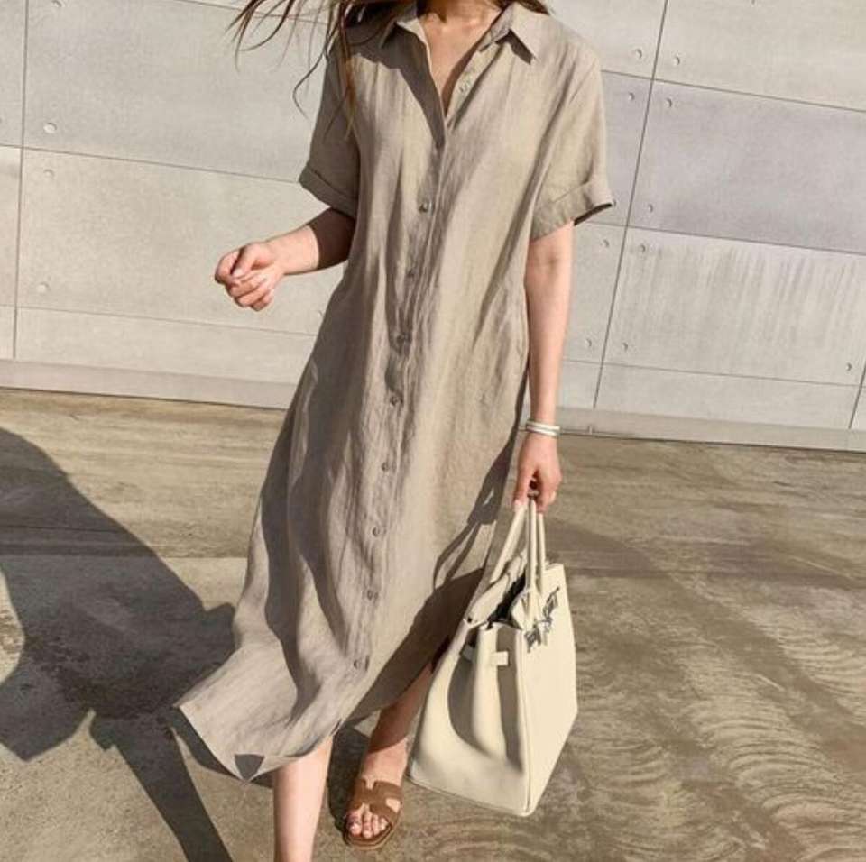 Wholesale Long Linen Dresses for Women Keten Gomlek Elbise Robes De Lin En Italie Robe Chemisier