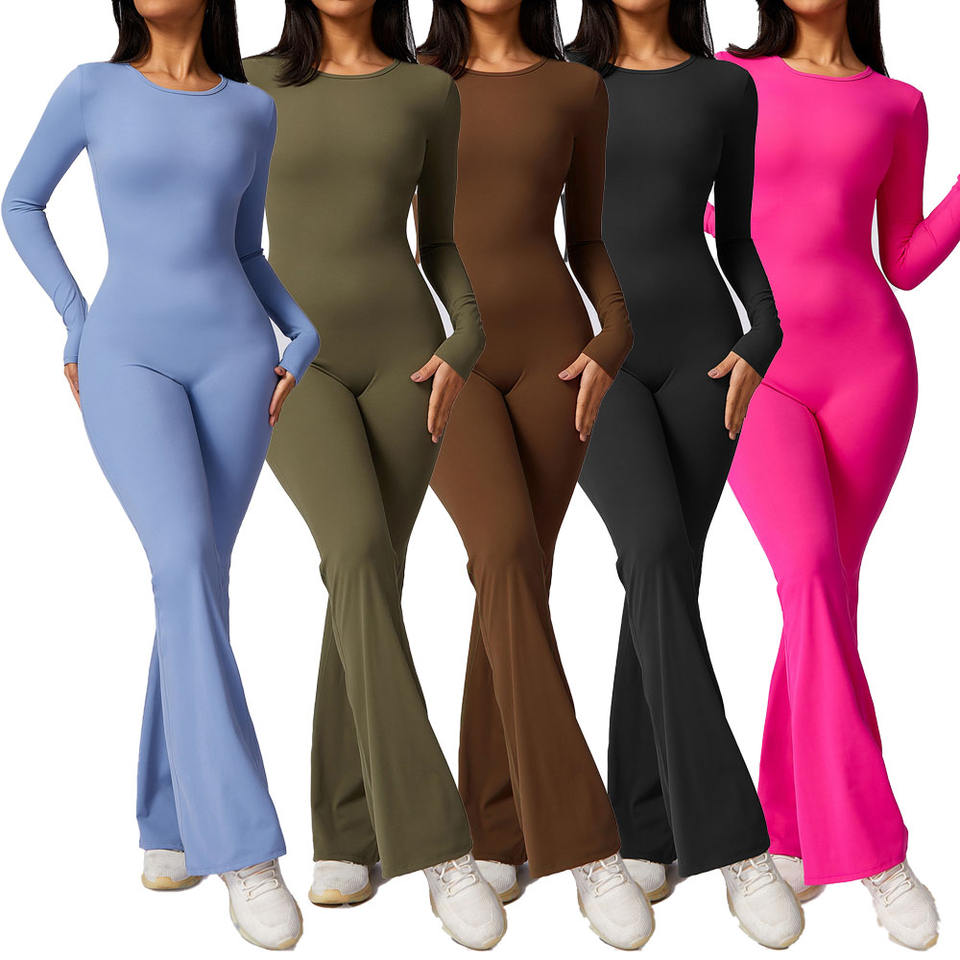 Wholesale Long Sleeved Fitness Sports Yoga Pilates Workouts Active Wear for Women Elegant Full Length V-Shaped Hip Jumpsuit
