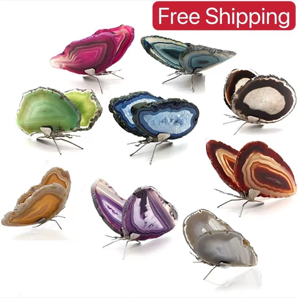 Product name:Natural Crystal Agate Slice Crafts Hand Carved Colorful Butterfly
