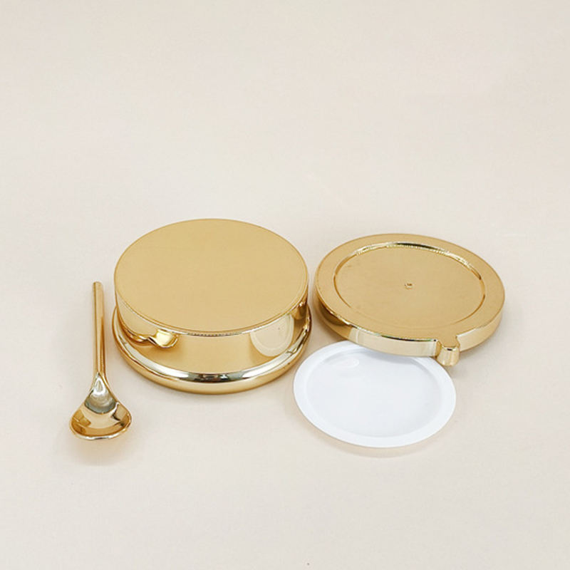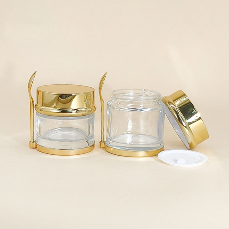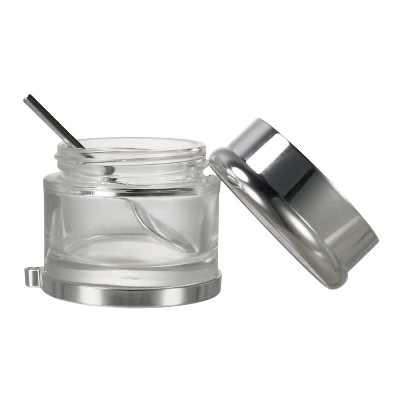 Wholesale Luxury 30g 50g 80g 100g Gold Cosmetic Glass Jar Silver Skincare Face Cream Jar Container with Gold Base and Spoon