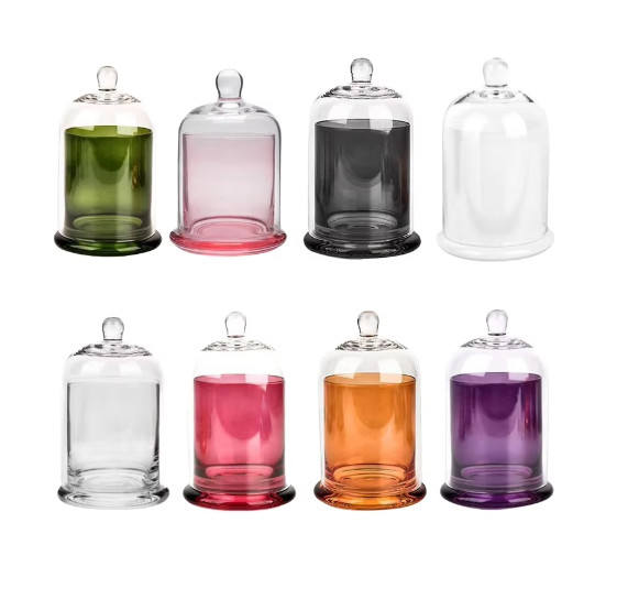 Wholesale Luxury Clear Glass Candle Jar Multiple Colors Decor Bell Dome Glass Cloche in Bulk Aromatherapy Glass Candle Jars
