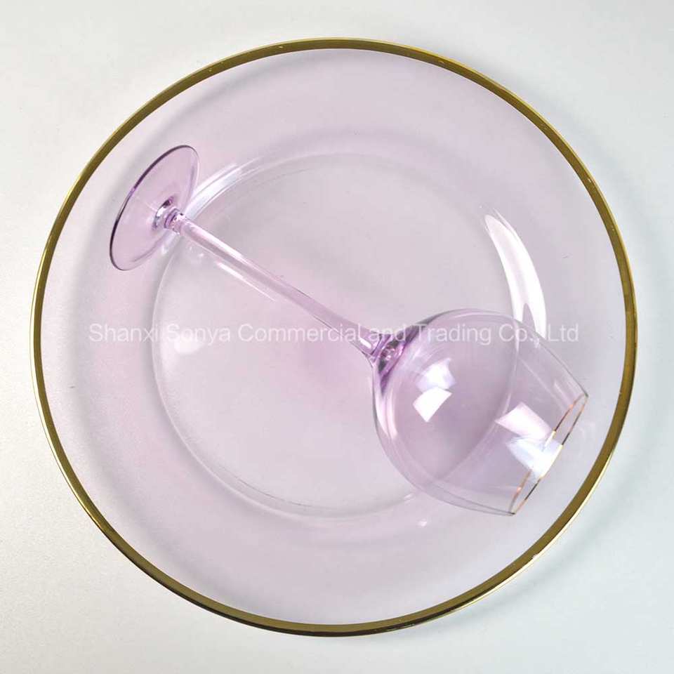 Product Name:wedding crystal rose goldl rim glass charger plates