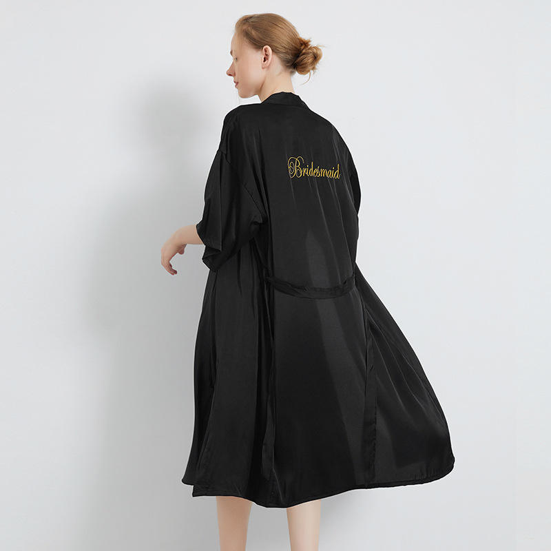 Customized Option: This luxury women's kimono-style black color long sleeves dressing gown can be customized with a personalized logo, allowing users to add their brand name or initials to create a unique product.