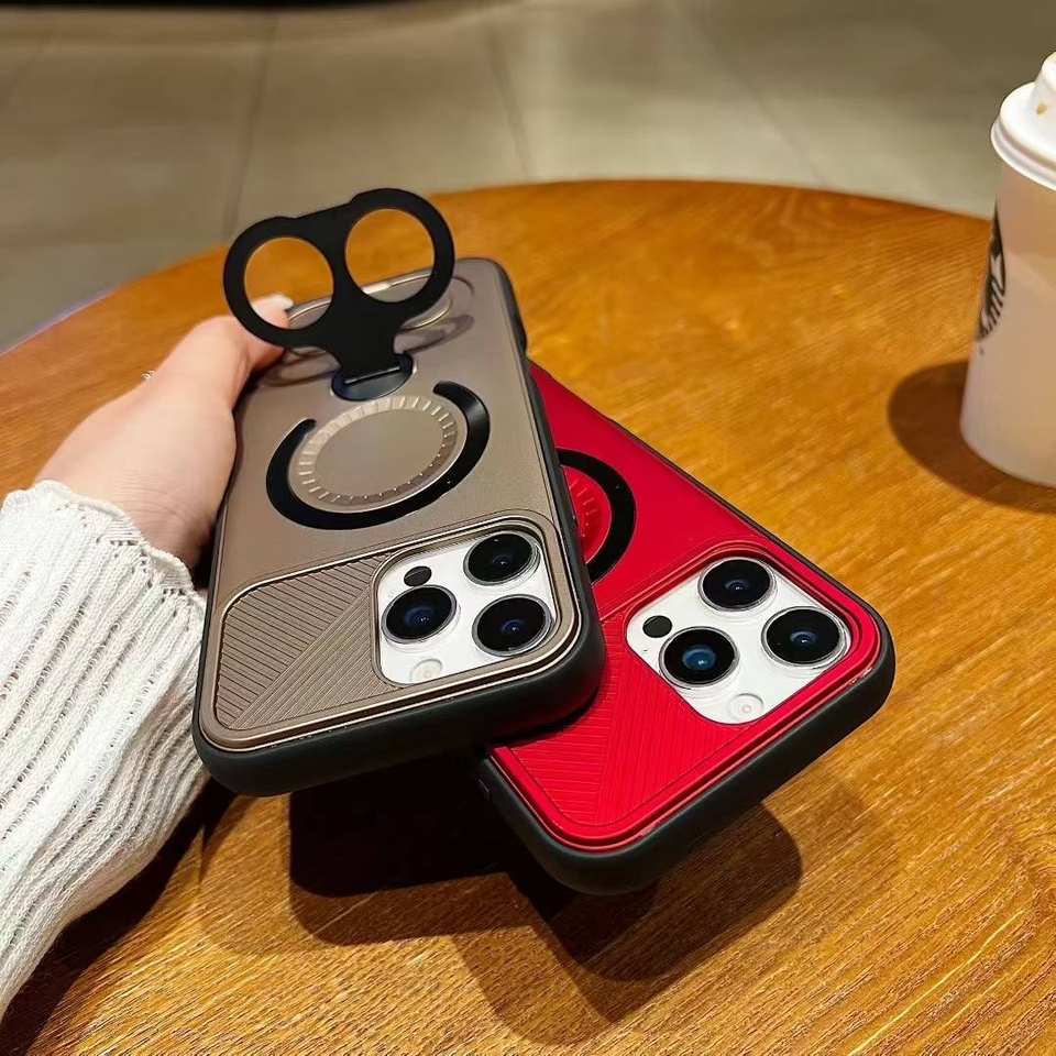 Custodia per telefono magnetica all'ingrosso per iPhone 15 Pro Max 14 13 12 11 Cover protettiva TPU PC con cavalletto in metallo