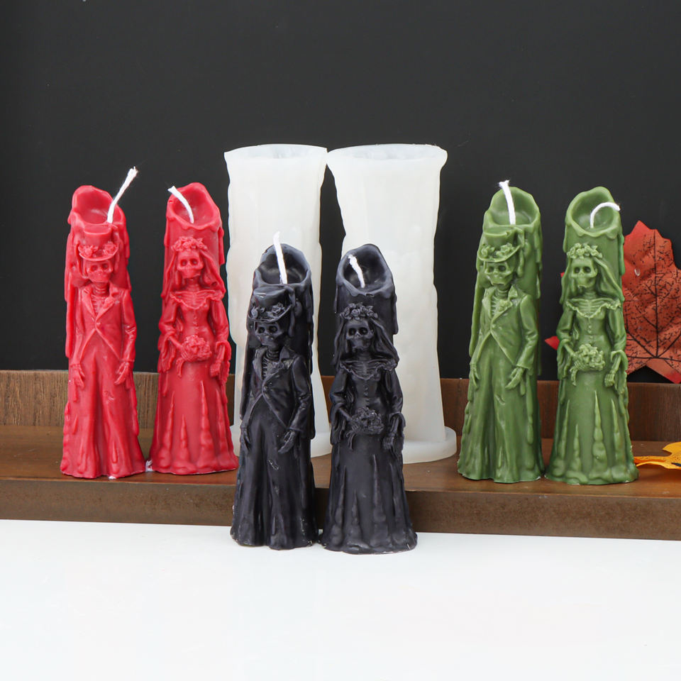 Wholesale Married Couples Candle Mold Halloween Silicon Wax Mould Ghost Bride Skulls Silicone Candle Molds for Home Decoration