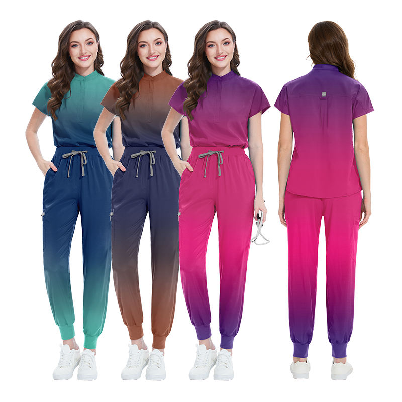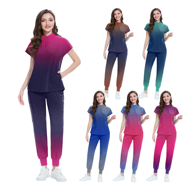 Wholesale Medical Scrubs Uniforms Gradient Color Anatomy Short Sleeve Scrub Sets Women Dental Clinic Nurse Scrub Surgical Clothe