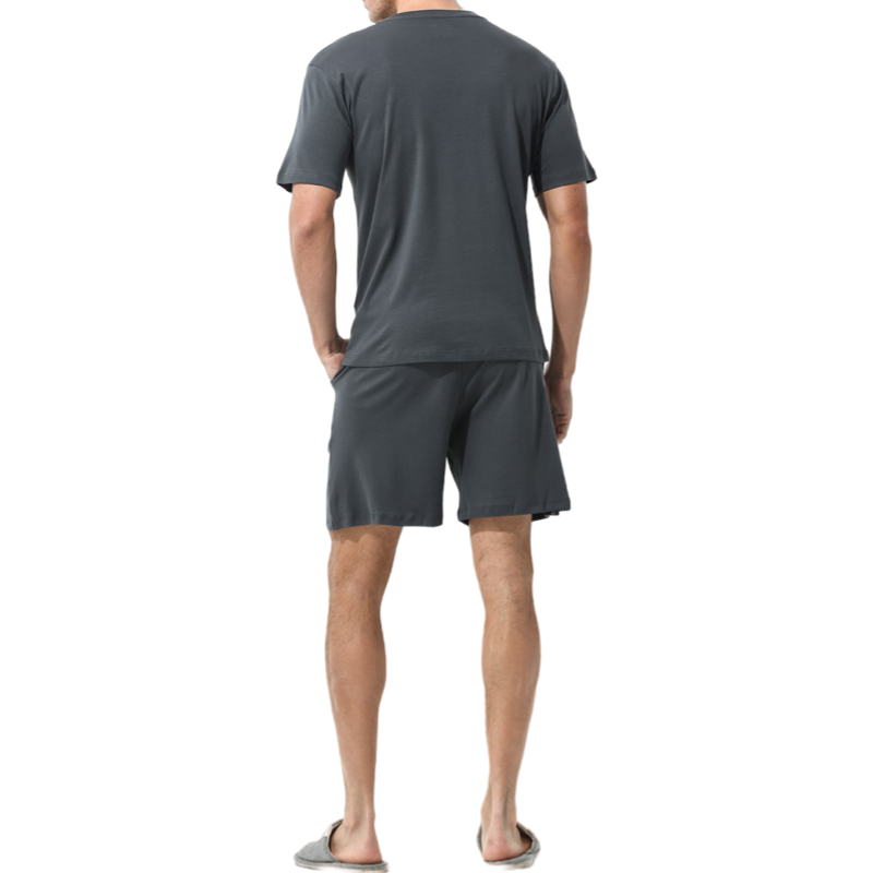 Set di pigiama di bambù da uomo all'ingrosso con stampa personalizzata pantaloncini da casa a maniche corte con motivo a maglia leggera in tessuto ricamato