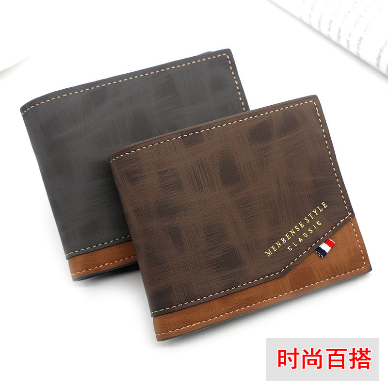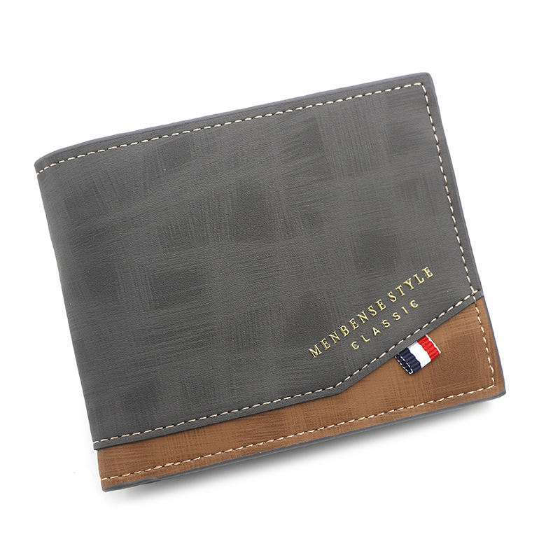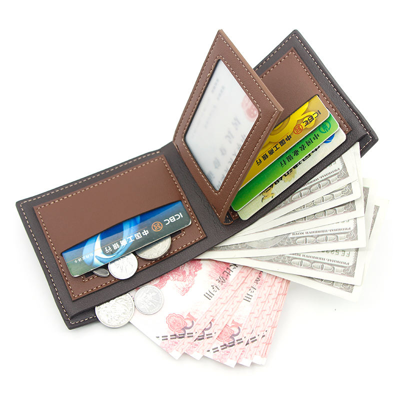 Portafoglio da uomo all'ingrosso in pelle PU con chiusura aperta, porta carte, fodera in poliestere, impermeabile, con logo, taglia corta
