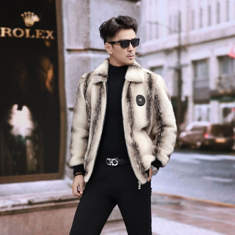 Wholesale Men's Winter Faux Fur Coats Lapel Style Imitation Leather Blazer Parka Trench Coat