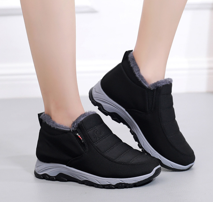 Wholesale Men's and Women's Casual Fur Walking Winter Shoes Black Warm Unisex Snow Boots with Large Size