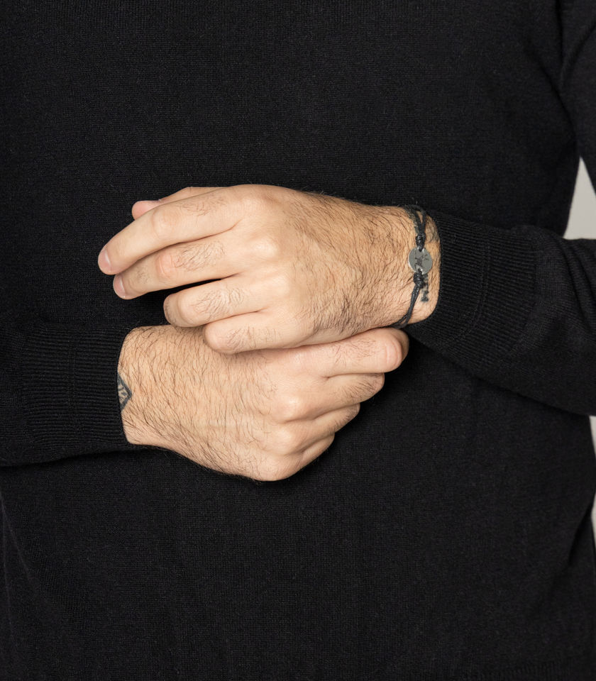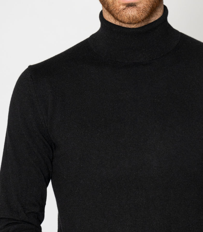Maglione da Uomo in Cashmere Lavorato a Mano, Collo Alto Nero, Manica Lunga, Vendita all'Ingrosso