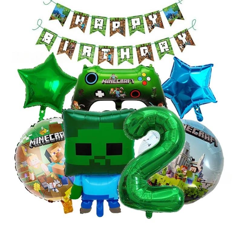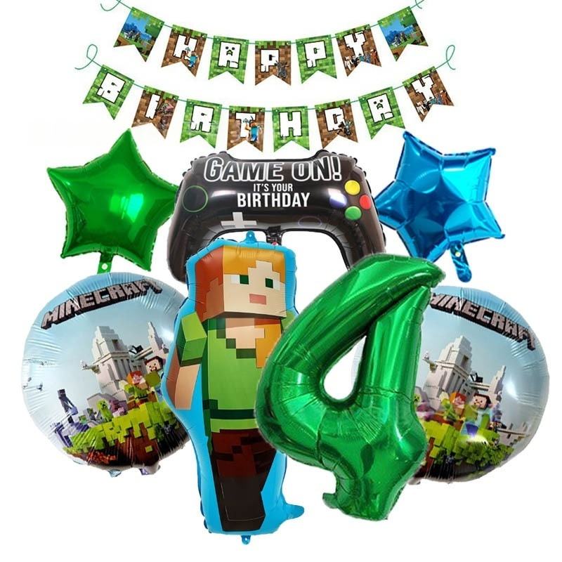Kit Decorazioni per Feste a Tema Minecraft all'Ingrosso con Palloncini Numerati, Set di Palloncini Rotondi in Foil Stampati e Striscione