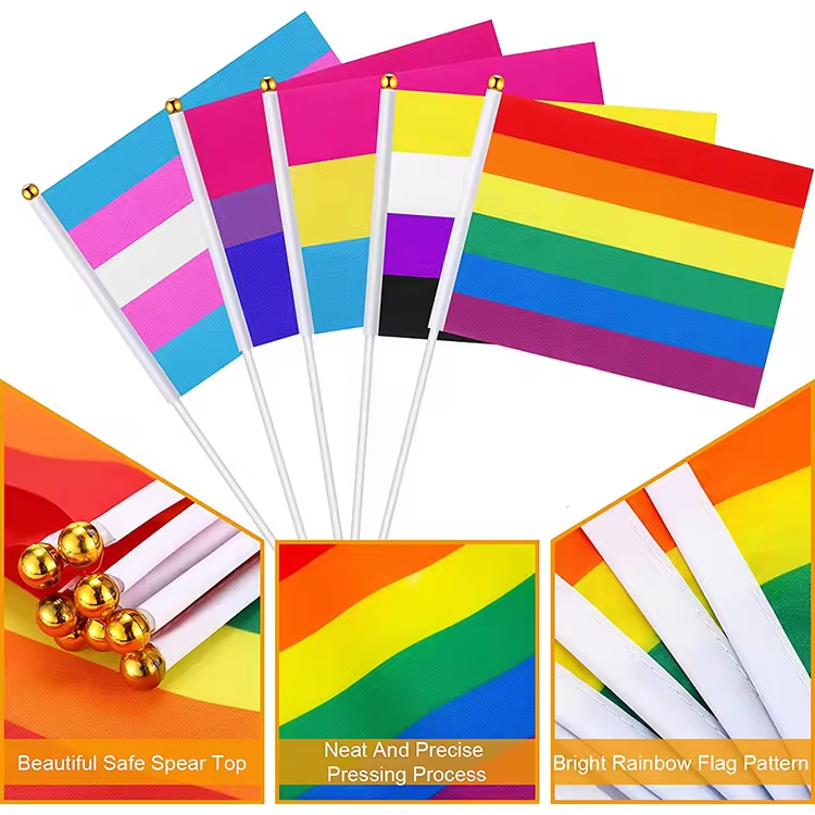 Commercio all'ingrosso Mini palmare arcobaleno Transgender LGBTQ bisessuale bandiera dell'orgoglio del progresso in poliestere e cotone che sventola gagliardetto
