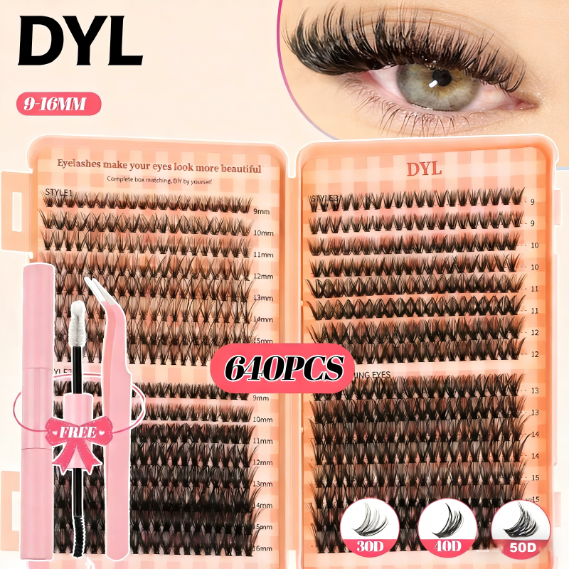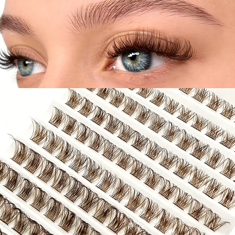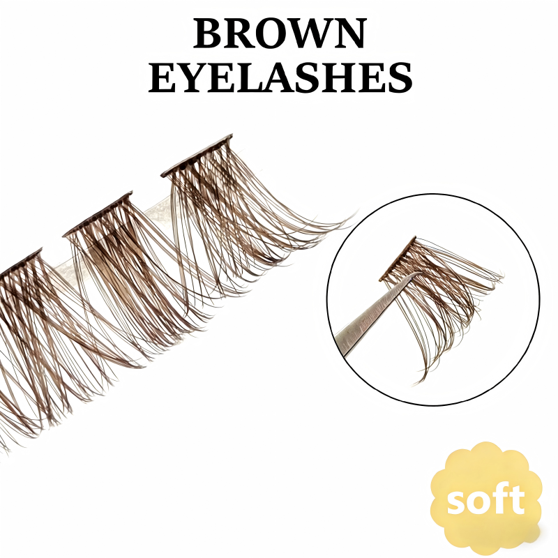 Set di Ciglia Finte 3D in Visone Marrone Pre-Impruzzate con Colla, Stile Cluster, Ciglia Segmentate Pre-Tagliate, Loghi Personalizzati, Cruelty-Free