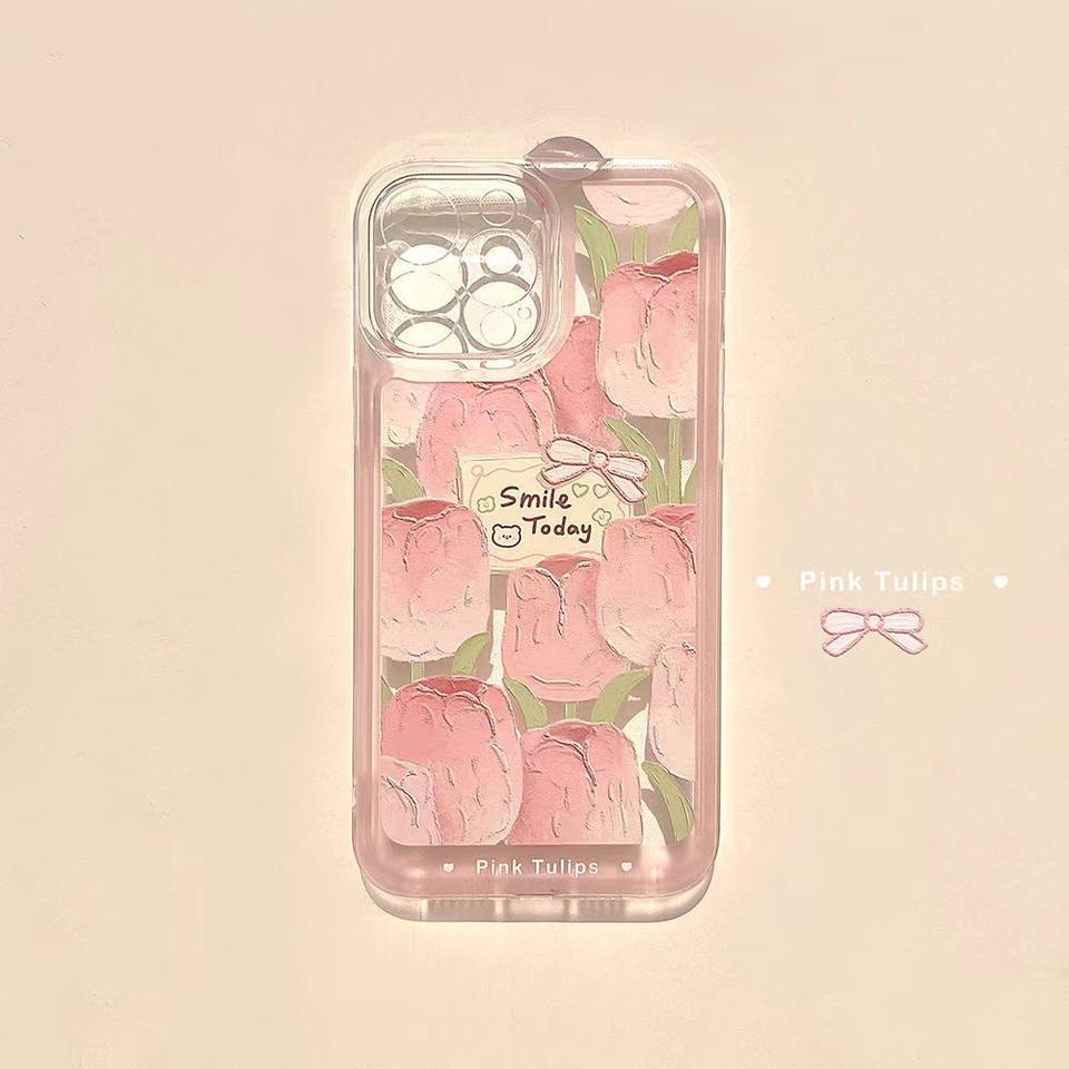 Wholesale Mobile Back Cover for Soft iphone 11 12 13 15 pink Tulip TPU I Phone 14 Pro Max case for Girls
