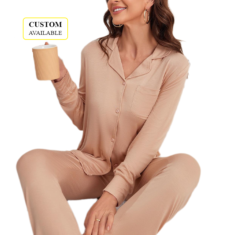 Set Pigiama Donna Autunno/Inverno in Modal, Camicia a Maniche Lunghe e Pantaloni Lunghi, Comodo Abbigliamento da Notte
