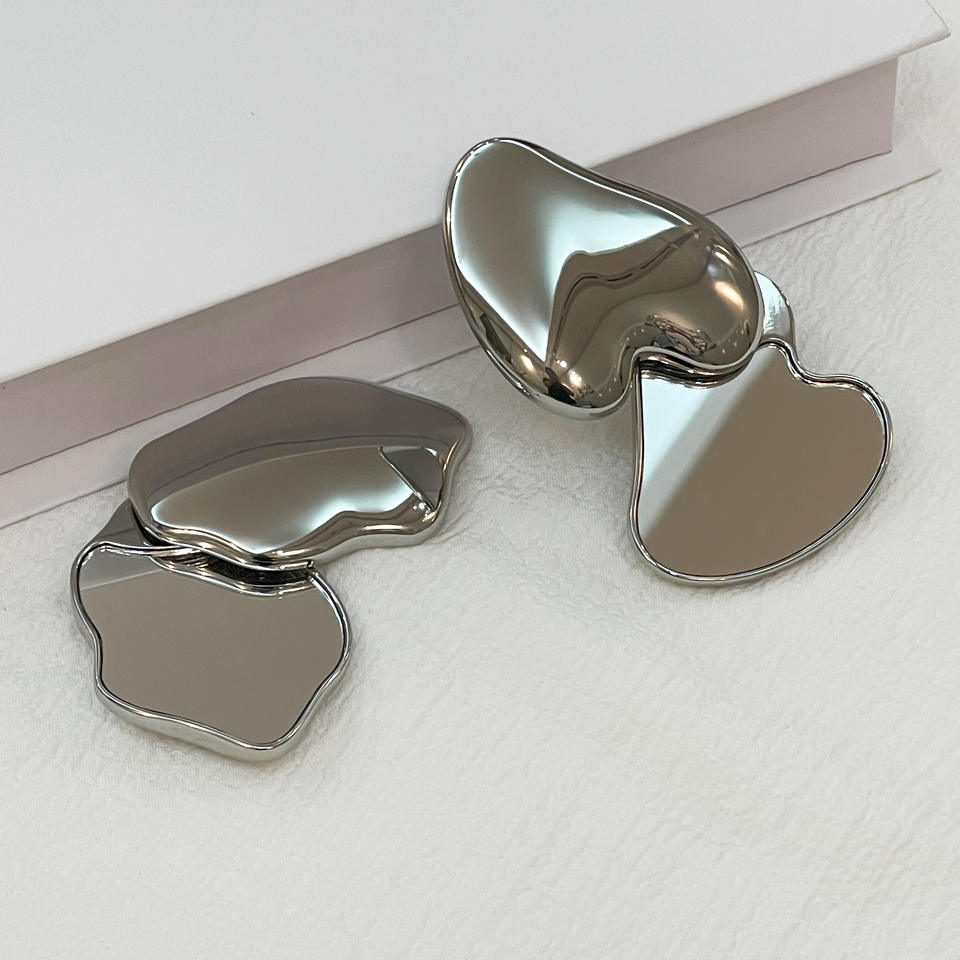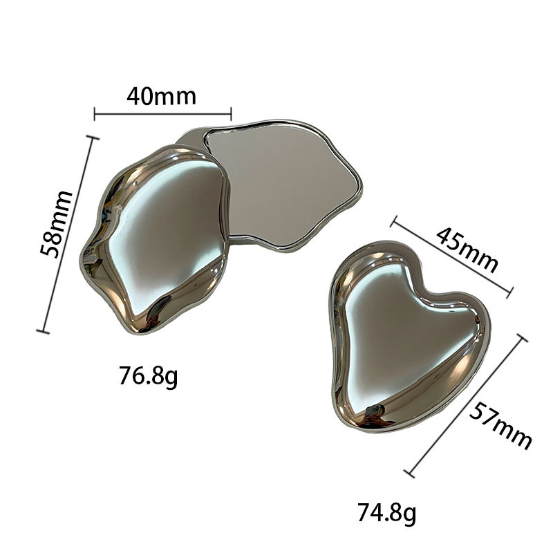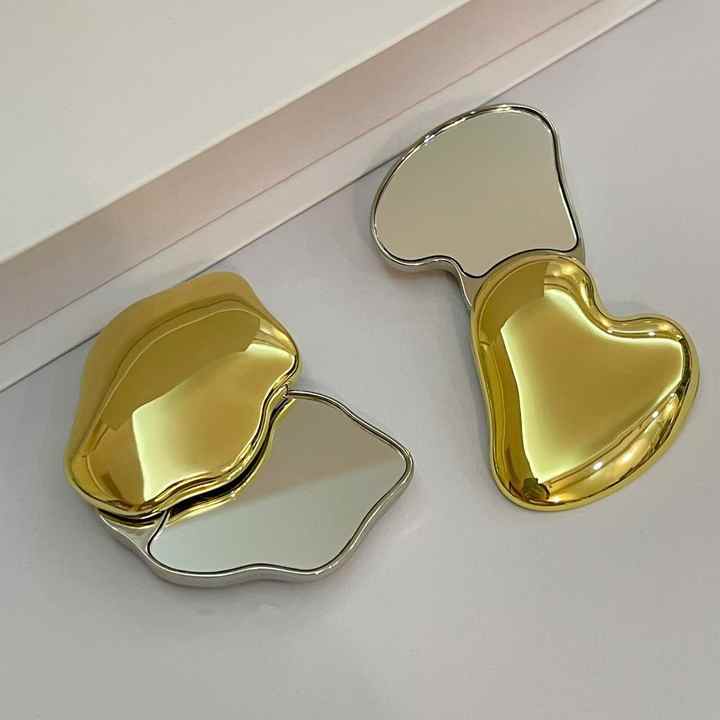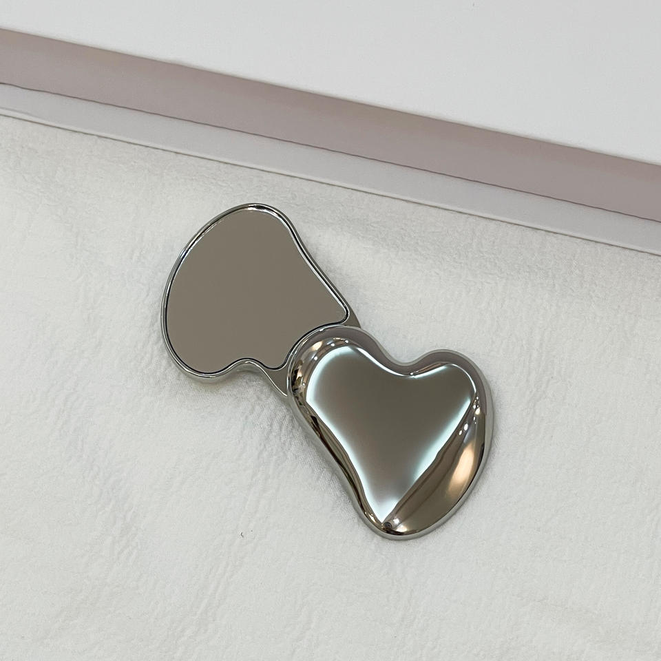 Specchio per il Trucco Portatile a Forma di Cuore in Metallo, Moderno e Pieghevole, Doppio Lato, Vendita all'Ingrosso