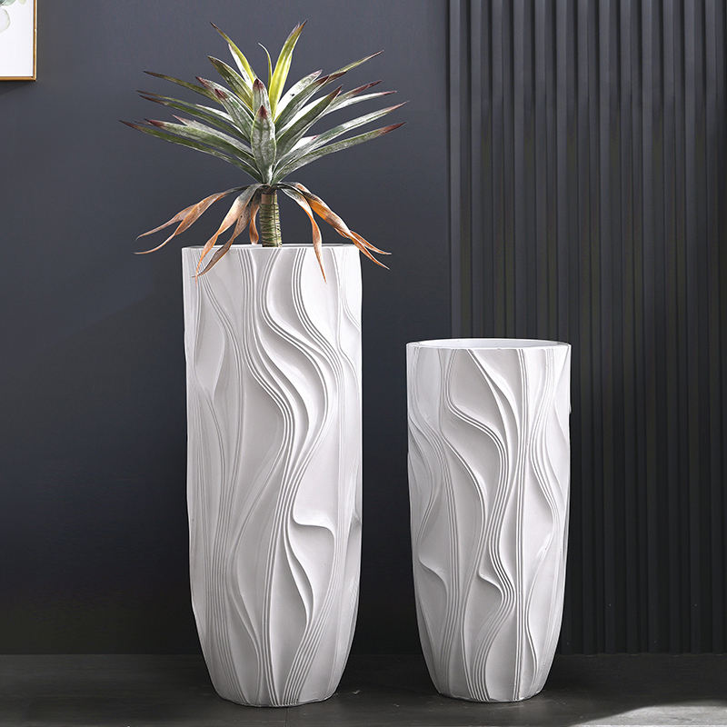 Wholesale Modern Home Decoration Tall Flower Pots 70 90cm Large Vases White Indoor Cement Planter