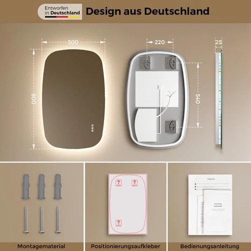 Specchio da Bagno LED Moderno all'Ingrosso con Interruttore Touch Illuminato, Luce LED Intelligente per Appartamenti