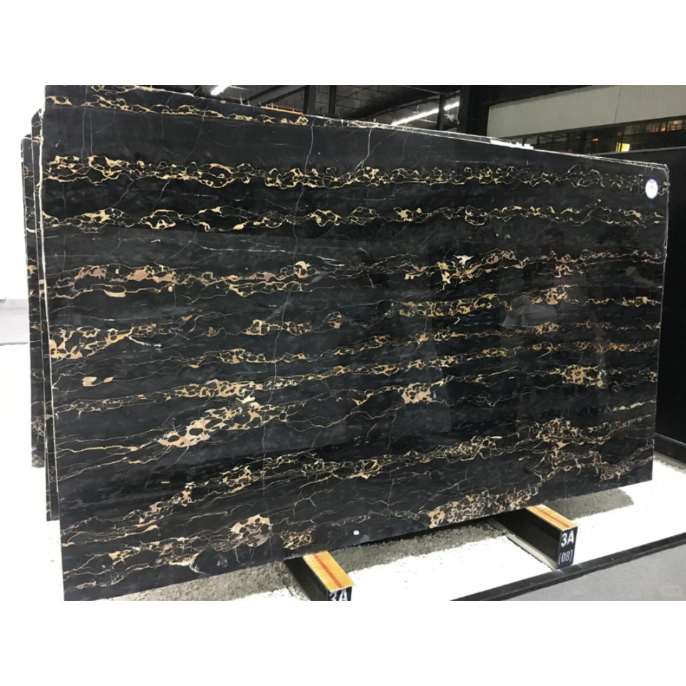 Lastre Grandi di Marmo Naturale Moderno Italiano Nero con Fiori Dorati per Tavoli da Pranzo, Tavolini da Caffè, Scale e Sfondi di Lusso - Vendita all'Ingrosso