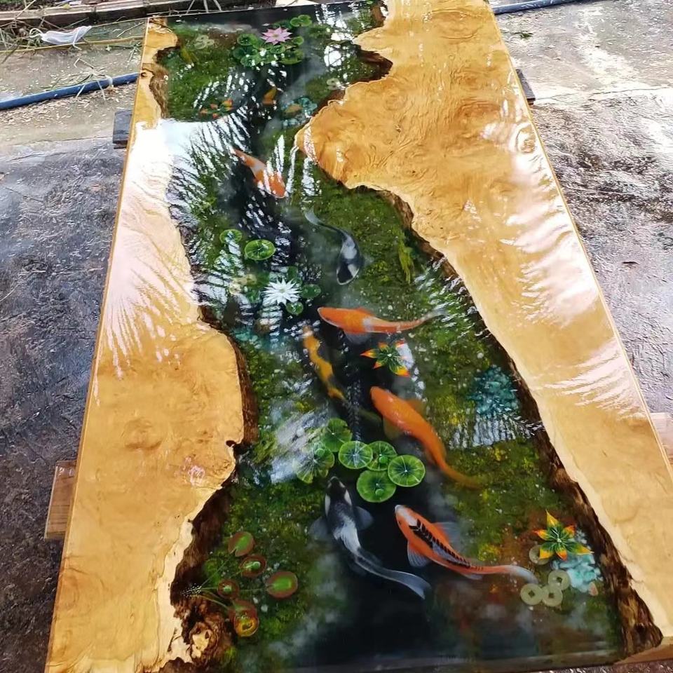 Wholesale Modern Outdoor Furniture Custom River Resin Epoxy Wood Sea Island Restaurant Dining Table