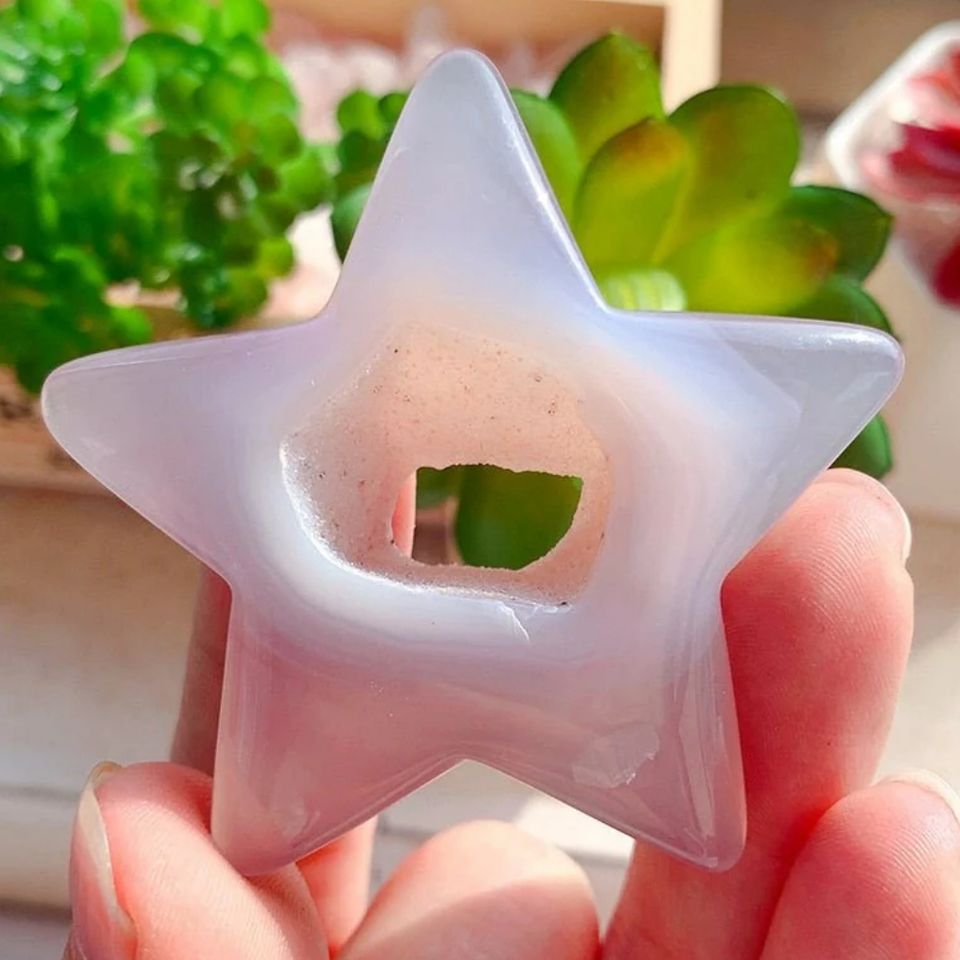 Wholesale Natural Crystal Agate Stone Crafts Volcanic Agate Star Pink Agate Druzy Five-pointed Star for Home Decoration