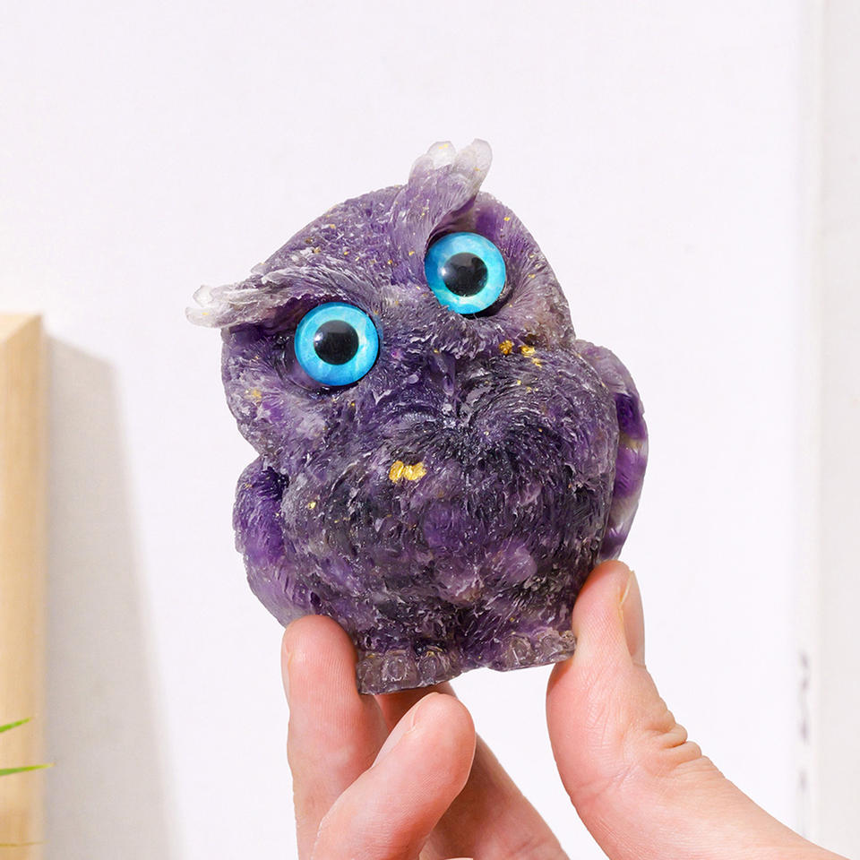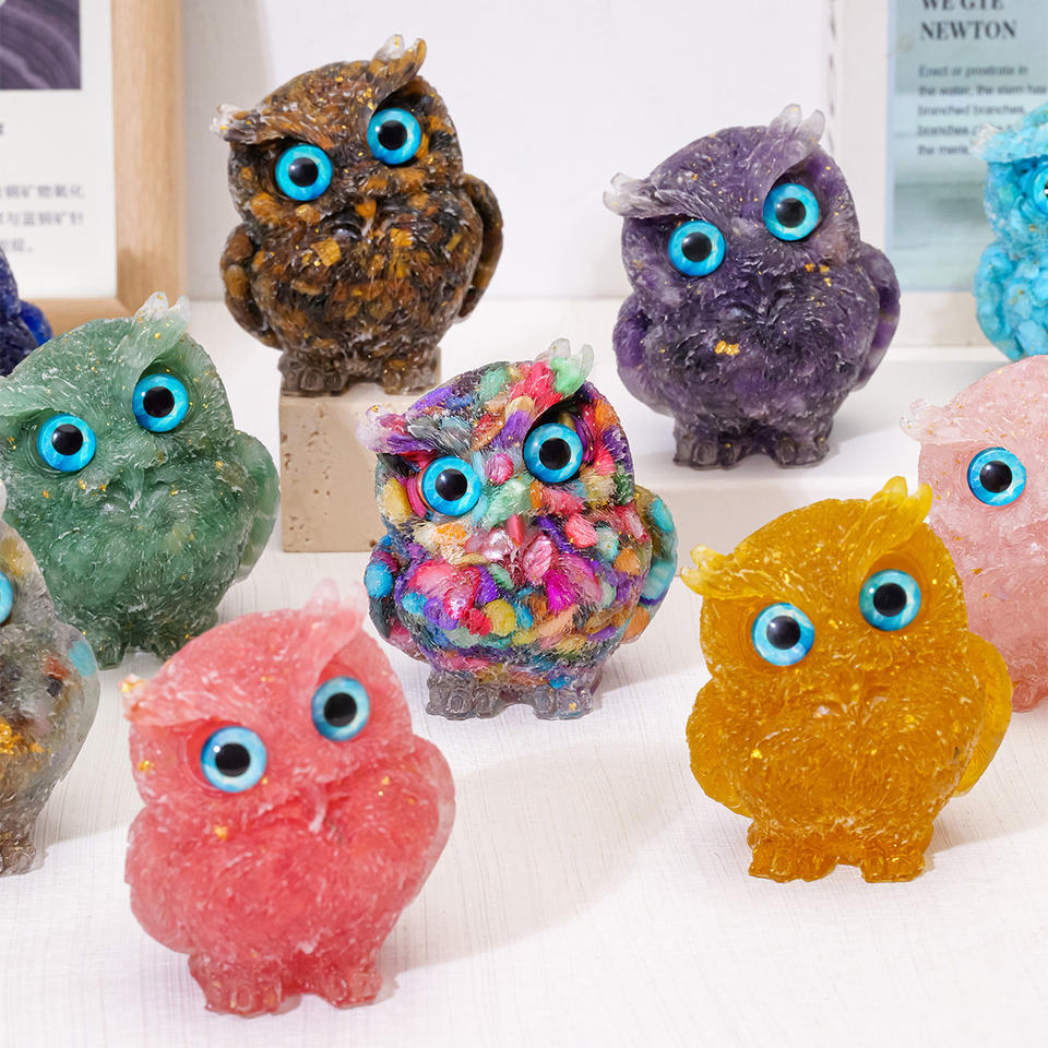 Wholesale Natural Crystal Gravel Resin Owl Figurine Crystal Craft Home Desktop Ornament Gift