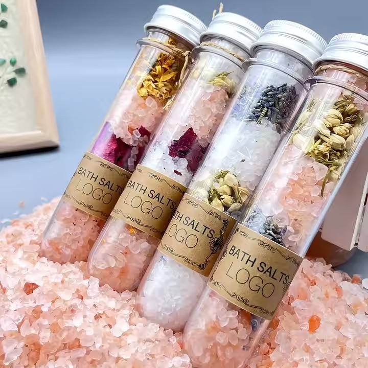 Wholesale Natural Crystal Stress Relief Relaxing Muscle Cleaning Products Himalayan Pink Bath Salt in Tube Can Ship to FBA