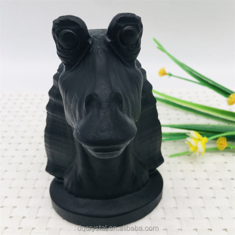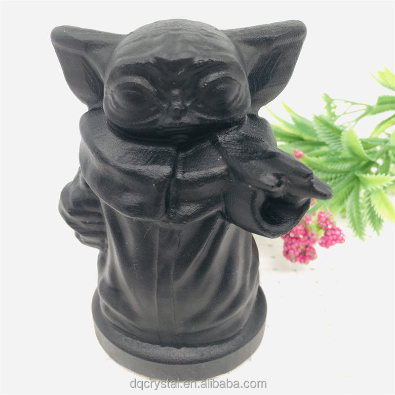 All'ingrosso naturale intagliato a mano 10cm cristallo di ossidiana di cristallo di Yoda artigianato nero ossidiana intaglio per la decorazione della casa