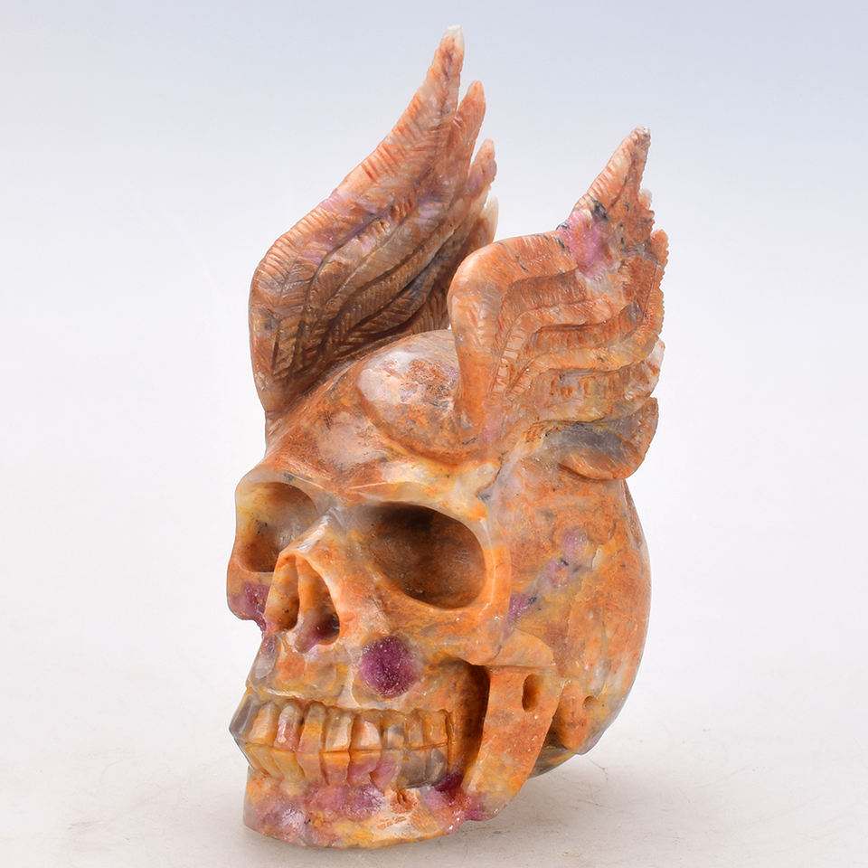 Cranio di cristallo alato squisito intagliato a mano naturale all'ingrosso con ala