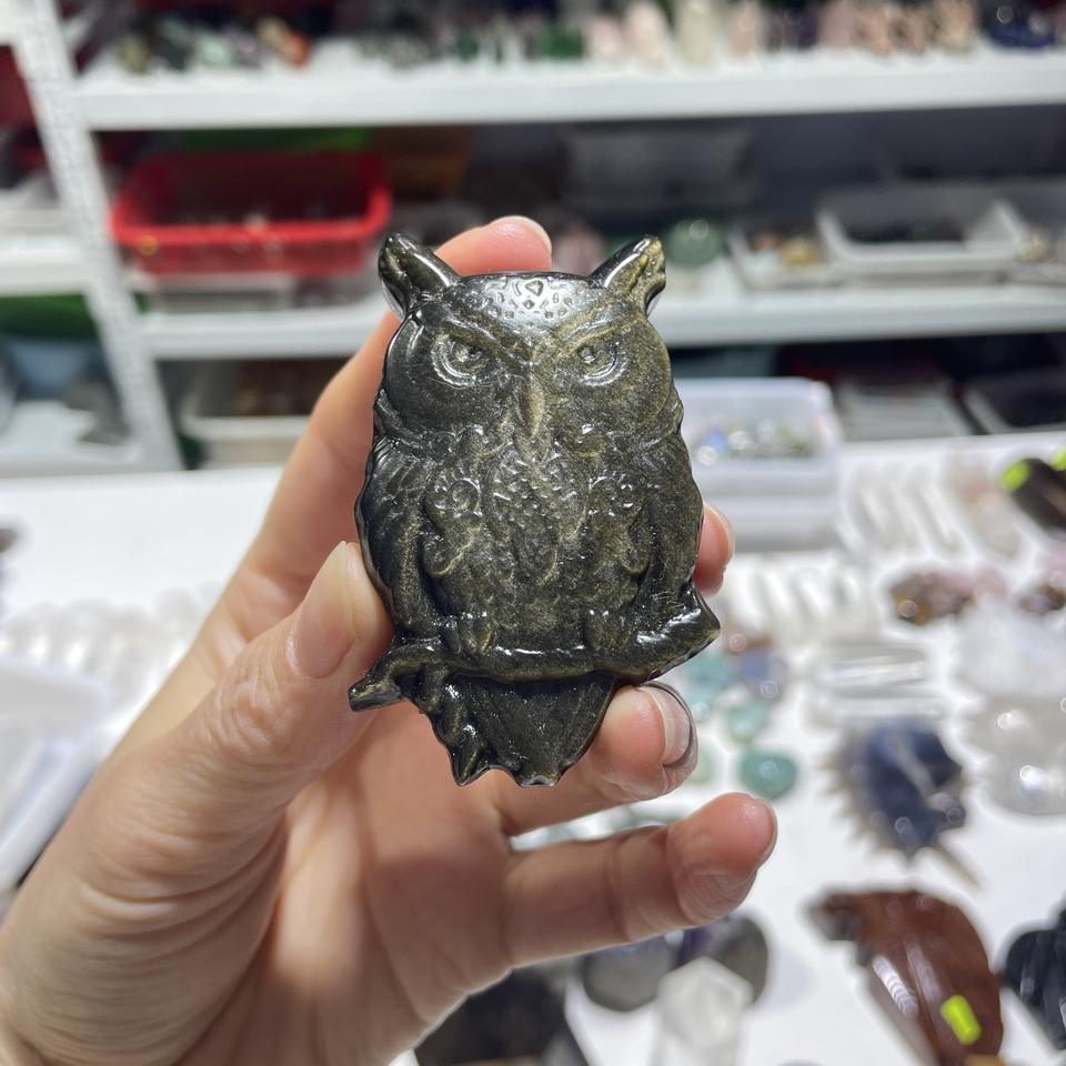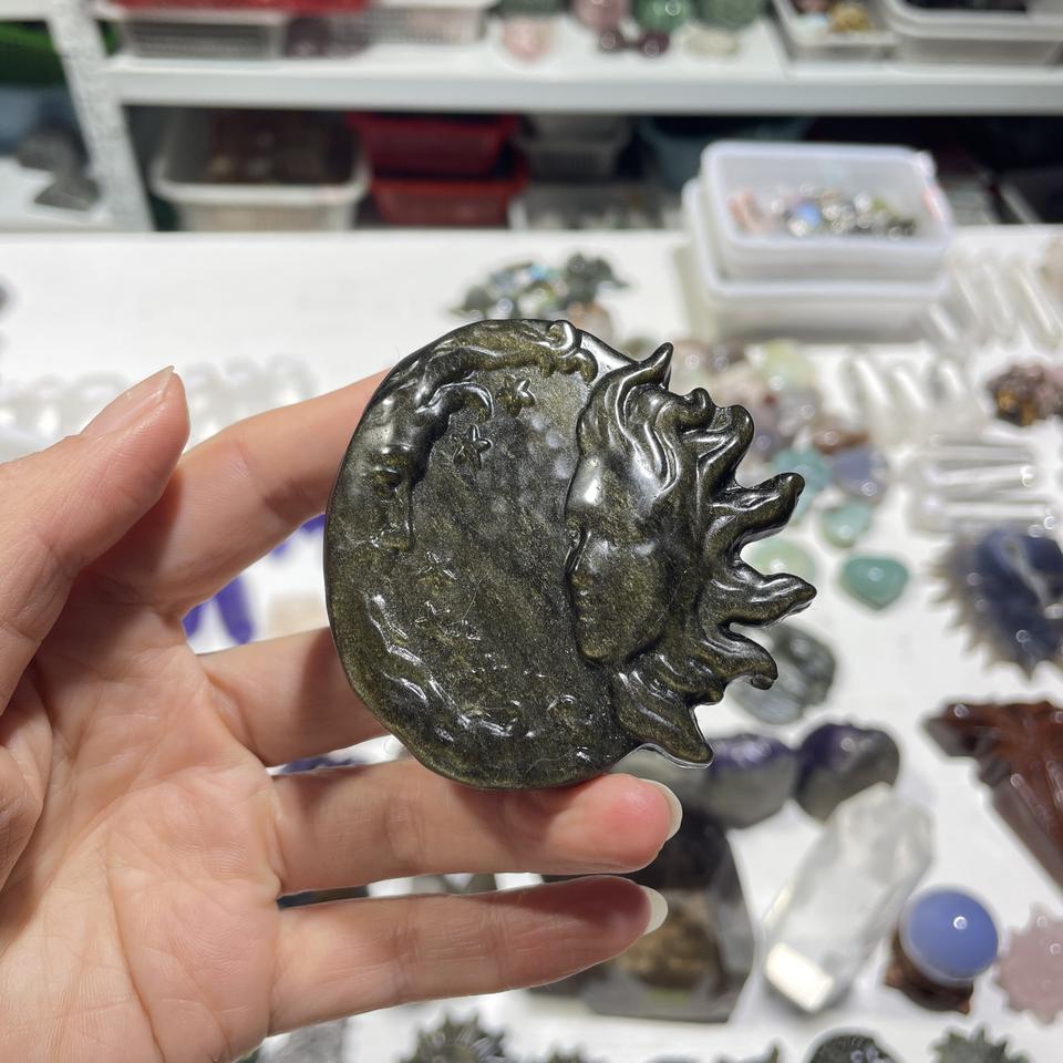 Wholesale Natural Healing Crystal Stone Carving golden obsidian sun with moon