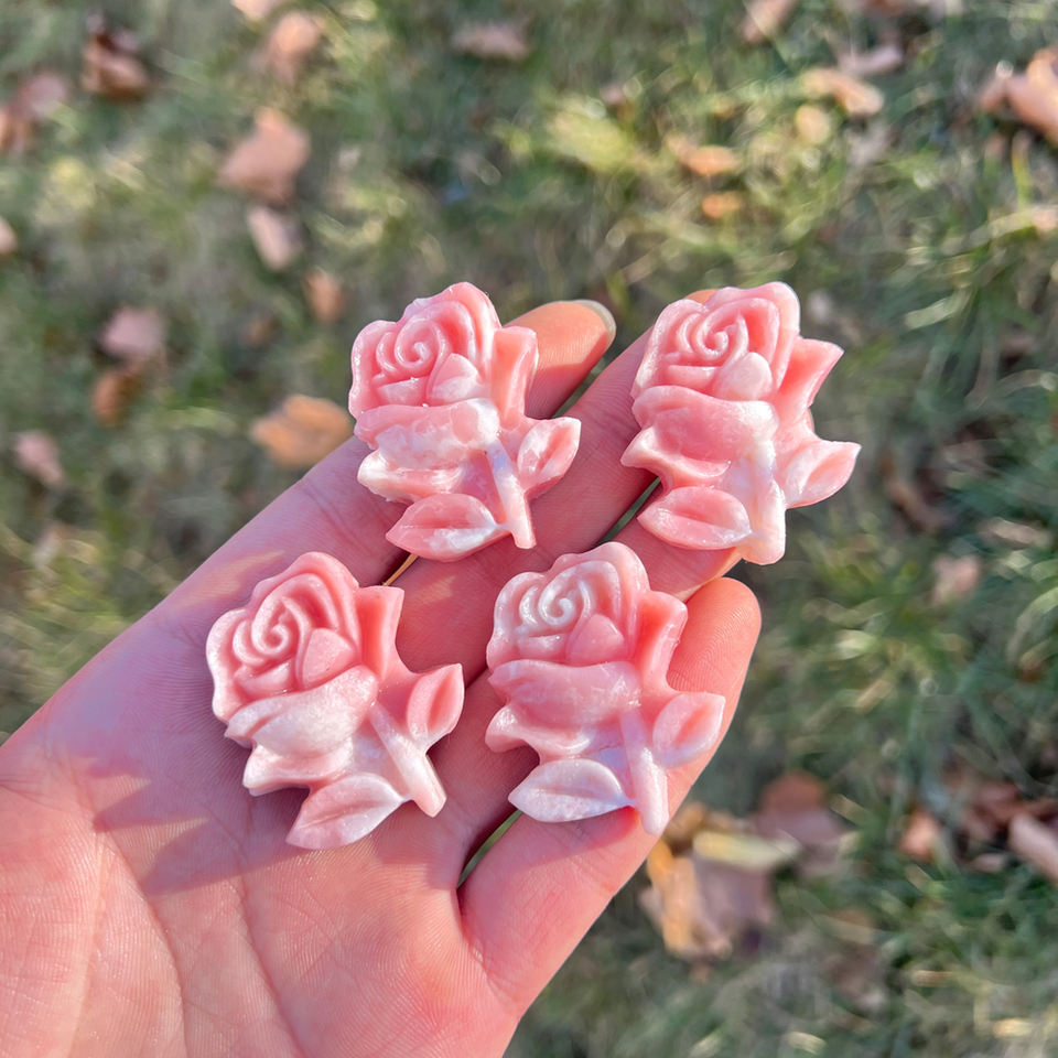 Wholesale Natural Healing Stone Carved Crystal Crafts Flat Pink Opal Rose Flower Crystal Carving for Decoration