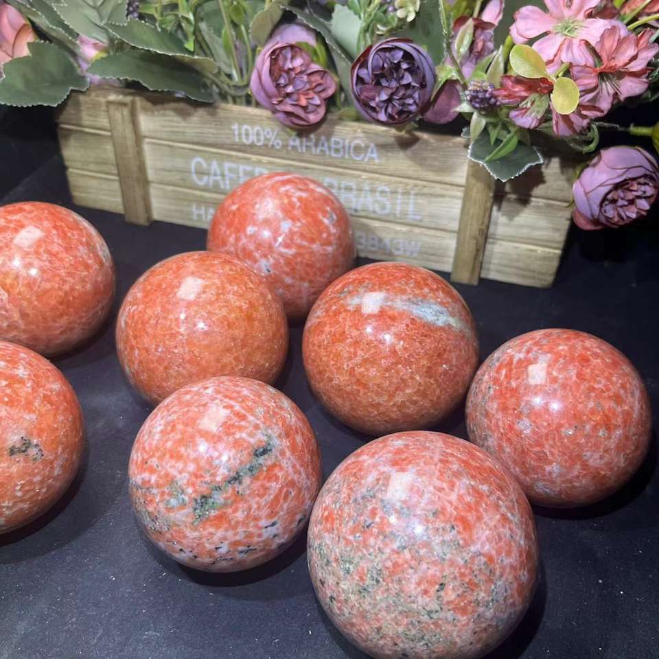 Wholesale Natural Prices Crystal Healing Sphere Orange Sun Stone with Mica Sphere for Sale