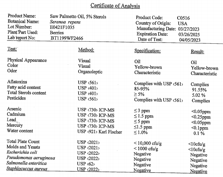 Olio di Serenoa Repens Naturale all'Ingrosso per la Cura della Prostata, Fornitura in Grandi Quantità, Spedizione Rapida