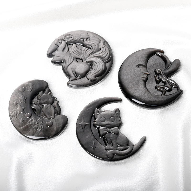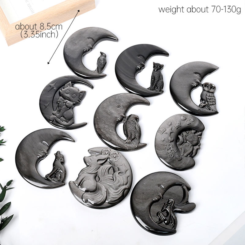 All'ingrosso argento naturale ossidiana a nove code di cristallo artigianato argento ossidiana luna fata intaglio di cristallo per la decorazione
