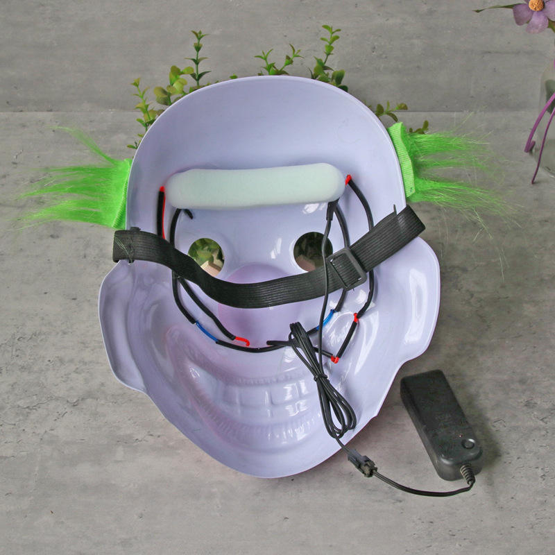 Wholesale Neon Glowing EL Wire Light Halloween Costume PVC Party Mask Featuring Fancy Clown Joker Flashing It Masque for Parties