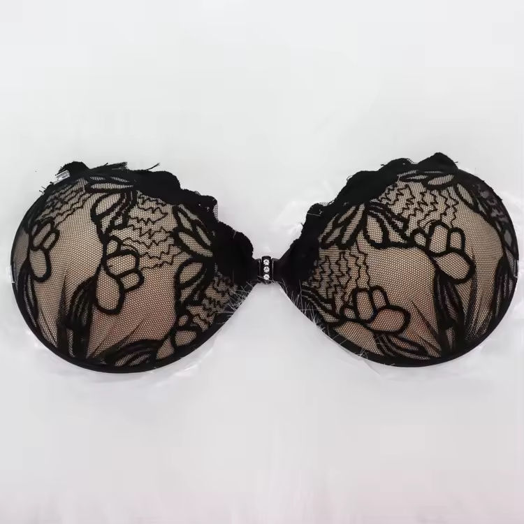 Reggiseno di pizzo senza spalline di nuovo Design all'ingrosso Sexy Lingerie nascosta toppa sul petto Pull up reggiseno per capezzoli