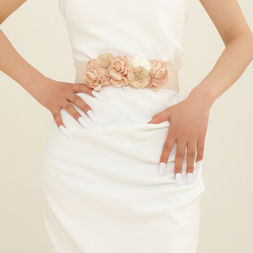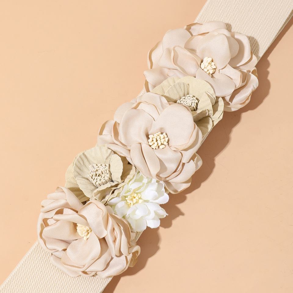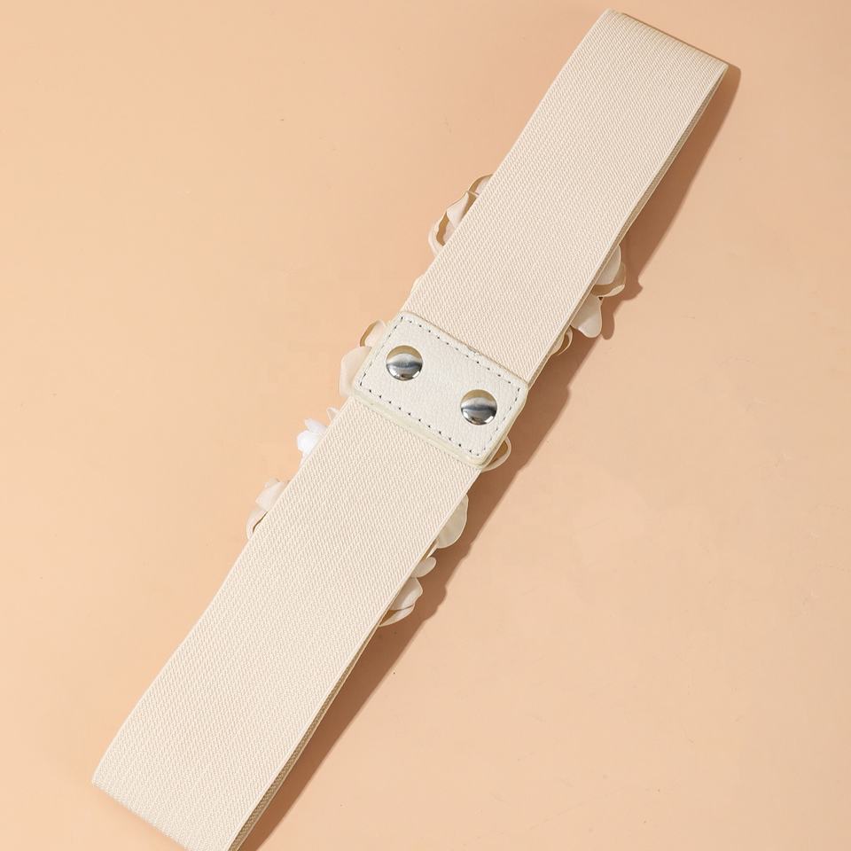 Ingrosso nuovo Fashion Designer decorativo Beige fiori donna tessuto cintura elastico da donna cinture da donna
